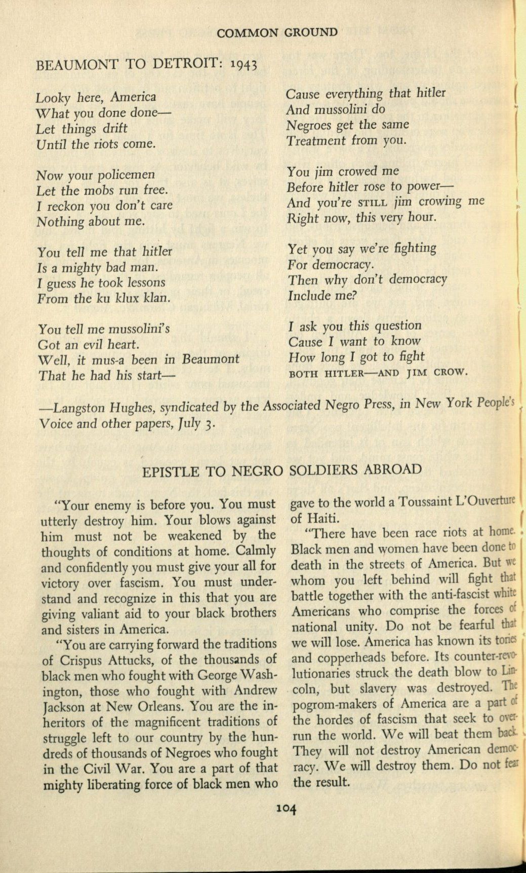 Langston Hughes Beaumont To Detroit 1943 Experiencing History Holocaust Sources In Context